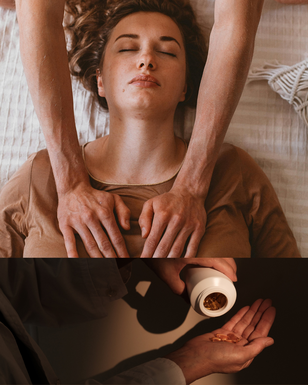 • Guided somatic movement, breathwork, meditation, and lymphatic practices to anchor the work in your body